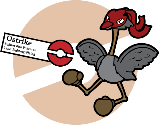 Name: Boxtrich (Boxing + Ostrich)Species: Fighting Bird Pokémon