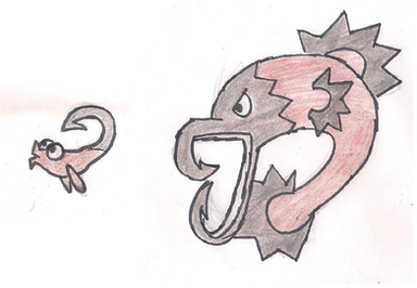 So in the real world, deep sea fish develop massive jaws and glowing body parts in order to attract whatever little prey they can. Now imagine there is a levitating eel that lives on the roof of caves, but instead of waiting for prey to come to it, it comes to the prey, by falling on them. It also has buzzsaw shaped teeth. Ouch.