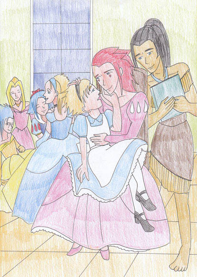 "Once a upon a time, a gaggle of princesses came to one place. All beautiful in every way, it wasn't until Alice (Roxas) came out of nowhere that the innocence was soon lost in a lust frenzy between Ariel (Axel) and Aurora (Vexen). The others watched in fear that poor boy didnt have a chance of survival"