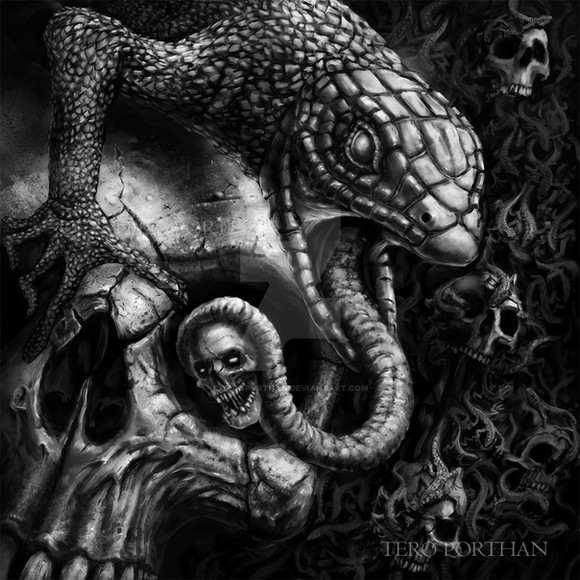 Great motive! On the little icon in my deaviantwatch-list it just looked like one of these ''skull and snake''-pics. But this one is really original and something new! i like it!