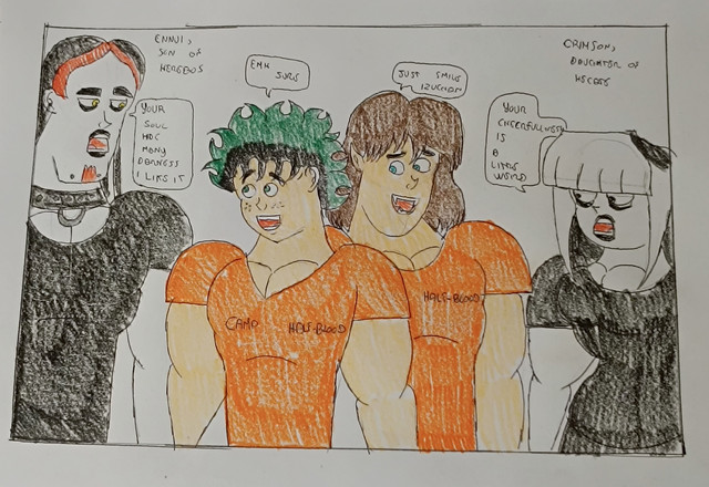 Bio: Alle one of the Super Jail Inmates, Hired by Arttu for Term Final Exam Practical Exam. He was set against Nestori, to see can Nestori fight someone that can’t get close. He goes to Super Jail for because the body constantly stole nutrients from heroes and civilians. (if you are wondering about weird look and feminine personality, it is because Alle is a stereotypical gay-man)