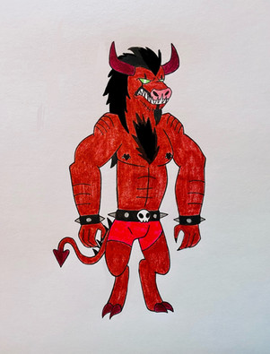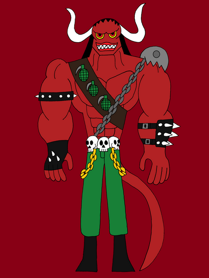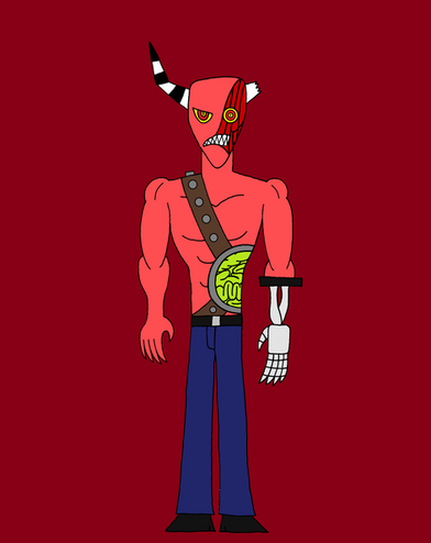 Saw is leader of Mercs-4-less mercenary league, and Deuteragonist of Dante's Inferno. Saw used to be a noble demon destined to become an heir. He's parents trained him in everything so that he would become the saint of the family. But because Saw was not like his parents (Arrogant Fascist) he ran away from home, left the noble family and fucked some lower class demon to protest his parents. Traveling through Hell alone, Saw noticed how bad things were in the Hell Ring, much worse than on Earth. He founded his Mercs-4-less league to help those suffering (for a "small" compensation, of course). Over the course of twenty years, Saw's mercenary League has become Hell's most famous. Saw seems like an arrogant bundle of muscles, but is actually wise, helpful, mentor-like and kind-hearted. Saw is always trying to come up with good Warcries but they never work. Saw is understanding and listens when someone has something wrong. Because of this caring nature, Dante and the other Mercs-4-Less members see Saw as a father figure, and follow him.
