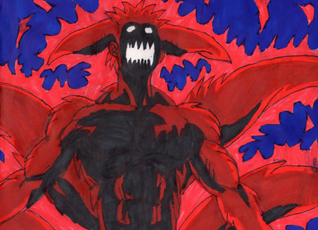Wow! i'm impressed! you did his ghostly eyes and the perspective of his hand looks great! not to mention the burning, bestial feeling you managed to transmit with this piece using some tones of deep red! it's just like four tailed Naruto, amazing work and congratulations!