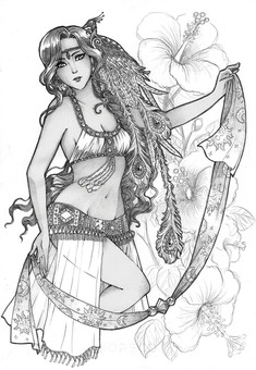 I love the detail and her clothing. Feel better! I can't wait to see this colored.