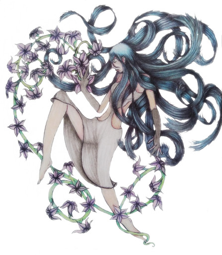 Regardless of my usual miserable spite in drawing flowers, I was actually quite taken by the pictures of black dragon iris, and really enjoyed this one. Sometimes I wish flowers would bite the ankles of passerby, though. I can always dream my beautiful dreams.It was quite hard to scan this one, because it's bigger than my scanner, so excuse any offs.
