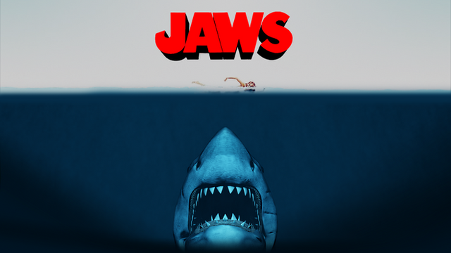 Jaws- *theme song plays* > *swimming towards Deadpool*