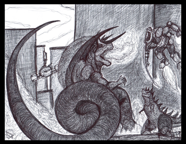 Awesome. this is a very cool piece. you know Ren's contest was one of the most influential contests ive seen here on DA. i mean not only did you guys make new kaijus but you actually kept on using them. you as well as others have stuck with your creations since. anyway this piece is really cool. the detail is superb. its also good to see new pieces from you. its been awhile since you posted something. really awesome job
