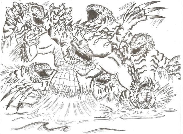 Ah, sweet info! I'm actually an inker, though not an experienced one. I was just wondering if there was a kaiju sketch you had that I may try to ink for practice. I've got one or two inked pics in my gallery, though that's about it atm.