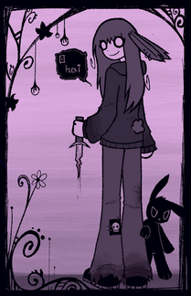 cute clothes n a happier expression for a changei found a fractal brush and went nuts on the background lol