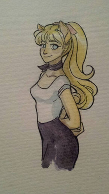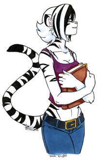 Ugh. Stupid scanner robbed Reese of her markings. She's a raccoon with cream markings. I really need to figure out how to change the settings on that thing. The pic was drawn today while I waited for my mom in the car while she had a doc's appt... 2 hour wait >Okay, so as far as the pic goes, Jay (who's one of my very first male characters) is Reese's cousin. They are very close, and he's obviously the protective type. She's 14 and has a boyfriend ( cheetah boy Kale ), so I guess you can say Jay is questioning Kale in this pic. Let's see....I don't like how Jay came out here. He looks too different from how I envision him. Dammit, he never looks right. He's one of my oldest characters and I still haven't nailed his design. That only means I need to draw him more. IIII... need to wrap this desc up. way too long. lotsa things wrong with the pic, so no critiquing. I already know what they are.