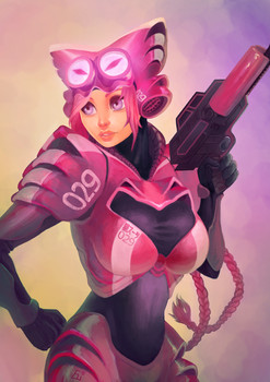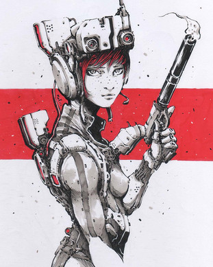 She reminds me of equal parts Tank Girl & Ghost in the Shell. Great work!