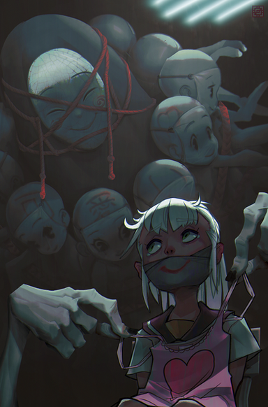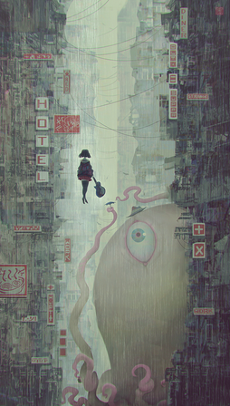 THis looks amazing. The beast guy reminds me of Studio Ghibli creatures . And she....has a pretty scaring, yandere-like glare XD.