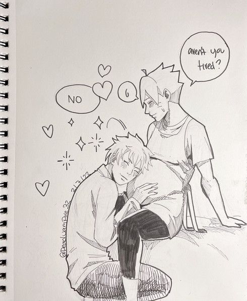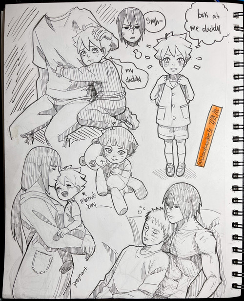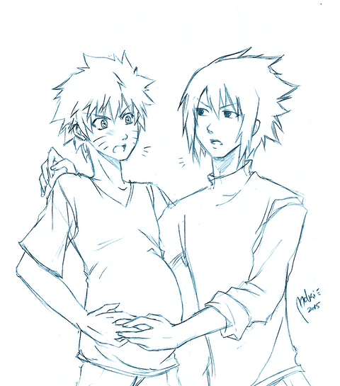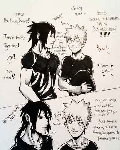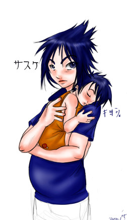 Sasuke only calls Naruto cute when he's pregnant because he does find him cute and he likes to piss off the blonde, little Yuuta secured in his daddy's arm. With the hormones the blonde is quicker to anger. Sasuke loves his angry fox.ΒRelated content
