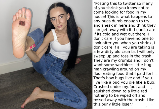 It was all fun and games to Jim. He had the ability to shrink himself since an early age. When puberty hit he used it in more devious situations. It started with spying on his mom and sister, later progressing to sneaking around teachers and classmates during class. This all lead to the day he decided to risk the girls locker room. Volleyball practice just finished, and the room was completely full. Though he didn’t even make half way onto the showers before the life was crushed out of him by Jasmin, the star player. With a twist of her foot she killed him, and in an even quicker motion, washed her foot and destroyed what little evidence that Jim was ever there.Dragoshafter