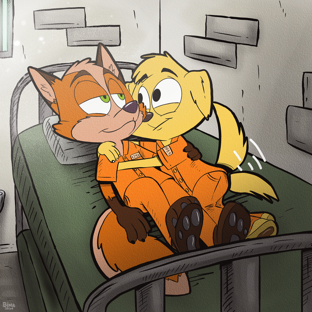 #fox #cartoon #digitalart #furry #commission #couple #dog #jail #oc