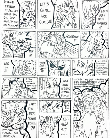 Paneling works the same. You can draw scenes that are 'ununderstandable' if it matches the panelflow. So for example if you are following one chara, you can draw action and reaction at the same time, not having to draw the 'hit' itself, but what results out of it. You get what I mean?? ;;;;; Imagine the character getting hit. Maybe the moevemnt of the oponent is too swift for him to follow. You only have to draw the frames he realizes that way...