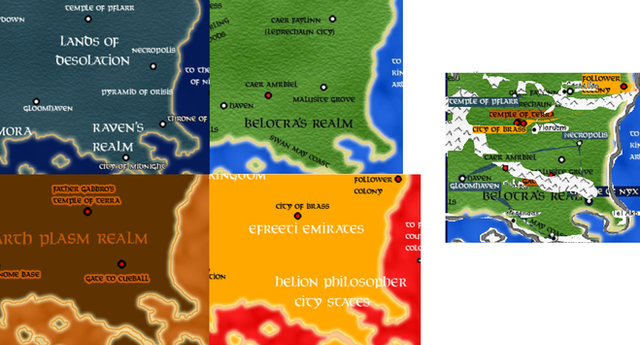 The city of the ocean-dwellers, with the structures built out of stone and corals. Wibawa is one of the oldest cities as it was built before the fall of the Ether Deity. The buildings are enormous in size and the city is wide-spread so that even the large water creatures can pass through the streets and caves.