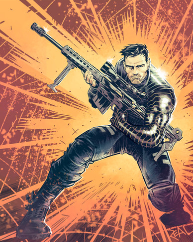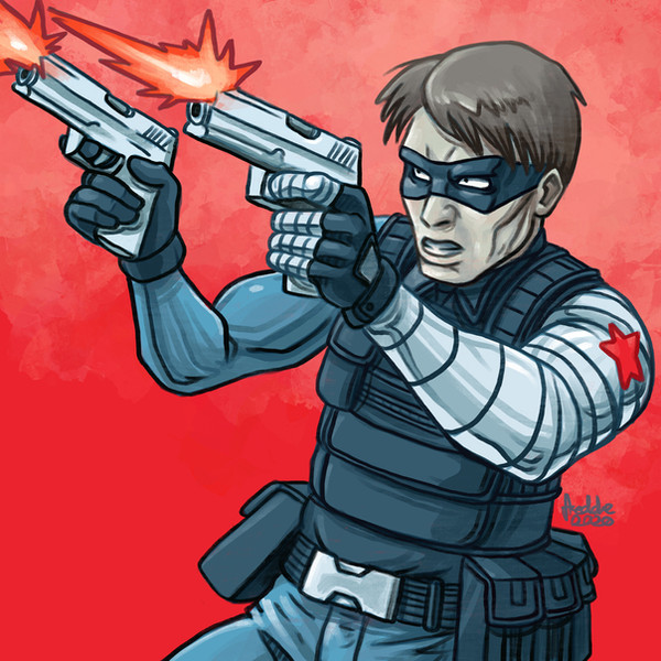 Does this mean he works for the Shield on his back or for Shield? Nice work.