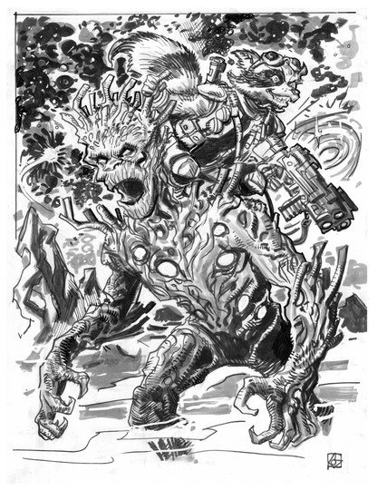 If I had a van, I'd paint this on the sides.Brush, marker, digital color.