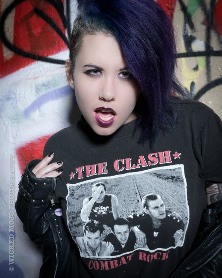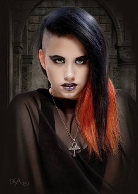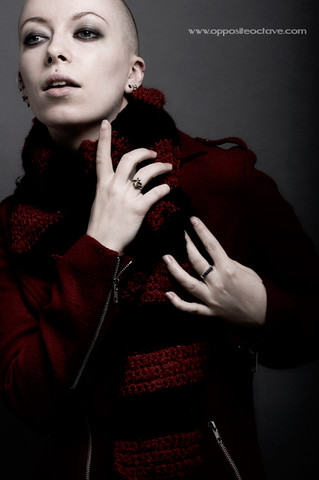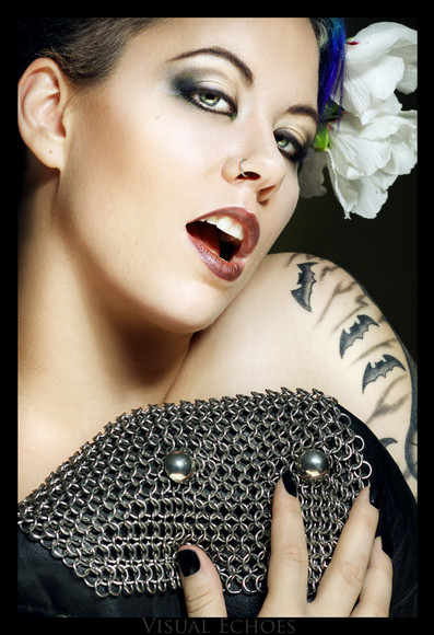 Wow. Your look here is intense. Also, I love the contrast of the chainmail you're holding and the lovely flower in your hair. And the color almost seems to fade to black and white as you move from the top of the photo to the bottom. Wonderful work.