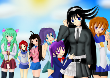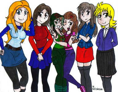 Well, I've been wanting to do this ever since I made Klara, but I guess I just never got around to doing a group picture because I was hoping for something a bit more like a drawing of them doing activities together or in a typical scene instead of just a pose from each of them standing altogether, but it'll have to do for now.