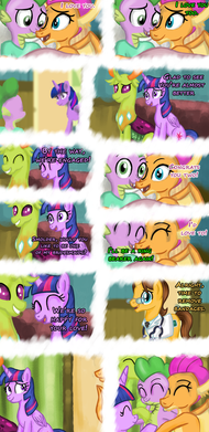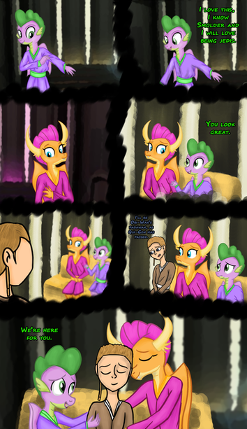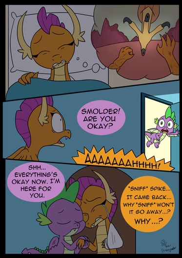 I thought this was a cute idea, it is a sequel to a previous commission ( www.deviantart.com/deannaphant⦠), Smolder sees Spike in hospital and is worried about him, but Spike reassures her he will be fine, they embrace and share a kiss then Smolder relaxes on him.