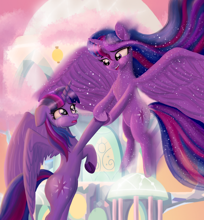 I'm not sure if this idea has been done yet, but I have seen drawings from others about Starlight being an alicorn so how about a flashback (or flashforward) scene but instead it's Starlight who will now be a different student from Twilight. And I know Twilight isn't an actual alicorn by birth, but perhaps it is only alicorns who have access to this place or something....