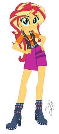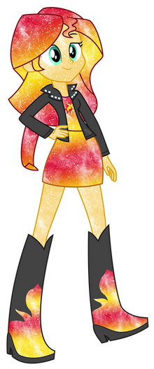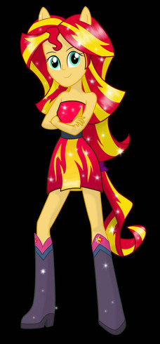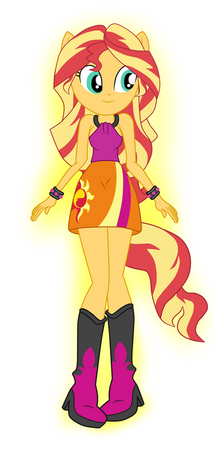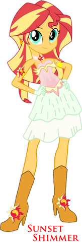 There's a lot of what if's I had for this: What if Sunset Shimmer went to the party instead, what if she were in Twilight's position minus wings, what if she were an element of harmony, what if she were nicer, etc. The design of her dress was based of her demon dress but I changed it to not look so evil.Β