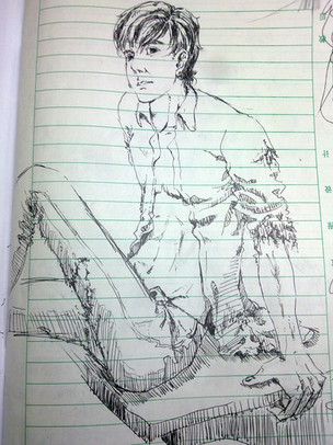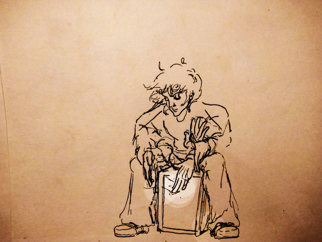 Sorry about not uploading in a while, guys.This is a picture I took in Spain, then colored over with markers and pasted some printed out lyrics on. The colour scanned remarkably well.