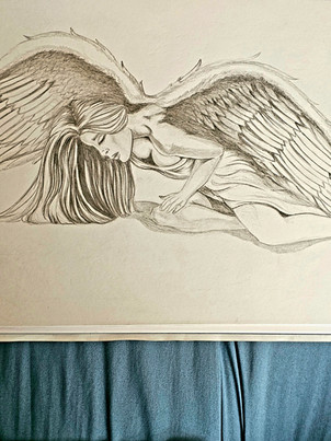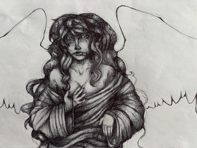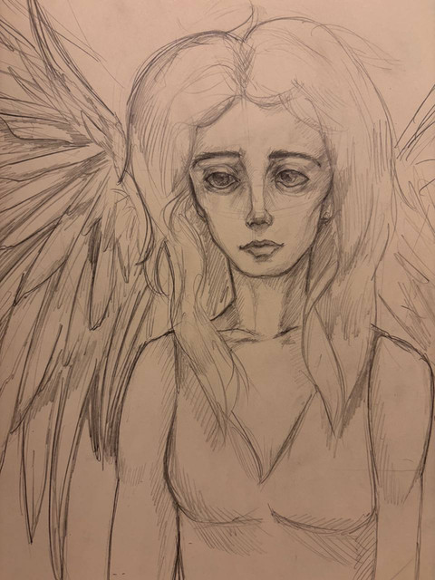 #angel #drawing #me #cry #blackandwhite #helpme #selfportrait #traditionalart #arttraditional