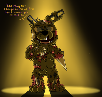 After people requesting, begging, pleading, flooding, and every other similar word I can think of for me to add Springtrap to my Five Nights in Townsville series, I finally present to you SPRINGTRAP FUZZY LUMPKINS!Geez, was Springtrap a pain to cast! He went through 5 different characters before I picked Fuzzy! But now he's FINALLY here! You have no idea how much of a pain it was to get this done, too, what with working 2 jobs right now and all.
