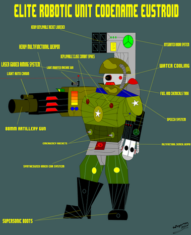After slight problems with Prime, 2.0 was created. 2.0 was built with increased sight range but decreased strength from Prime. Overall it was given only weapons useful at for long ranged combat. It carries missiles, chain guns, two machine guns, and more.