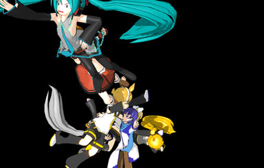 Well I was kinda boring and I had this in mind XD Chibi Len and Rin grabs onto Kaito's muffler while he run. he's like "GET OFF ME D:" XDRelated content