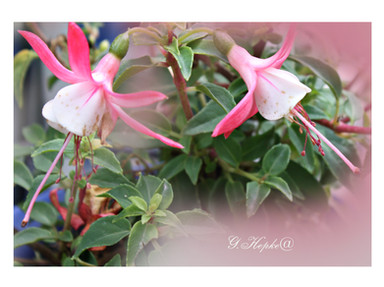 Fuschias on a bush that is in a black tub on my patio in my garden.My work is copyrighted Β©2016 *Deb-e-ann & *Kismetart&photography