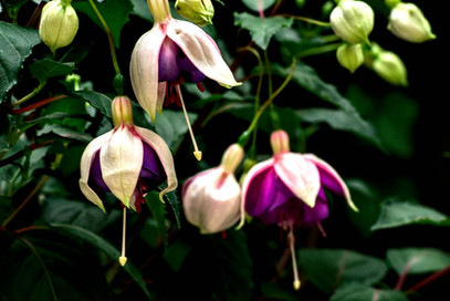oH Deb I love these so much! You did a wondrous job to contrast such crisp beautiful colours with a black background, a style that I really love. I have such a soft spot for fuschias, as they grow all over small property that is filled with may things.Β Anyway, each fuschia bush is of a different variety, But we don't have this variety- and I just LOVE IT!
