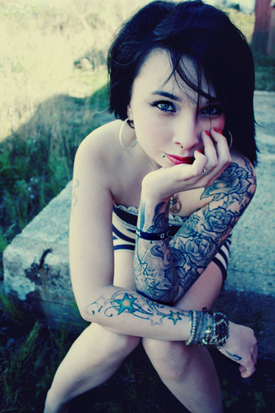 #black #brown #brunette #eyes #girl #pretty #rock #tattoo #tattoos #paleskin