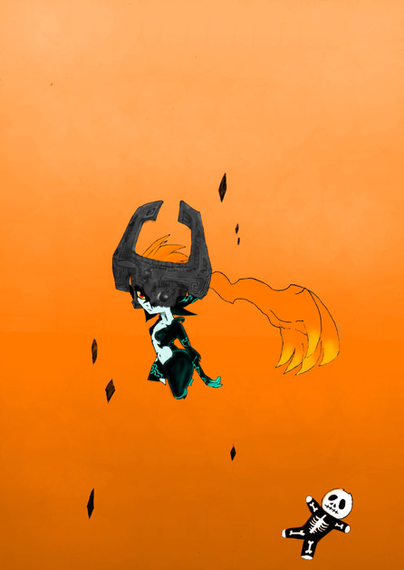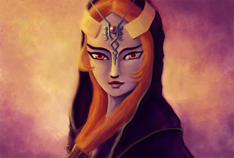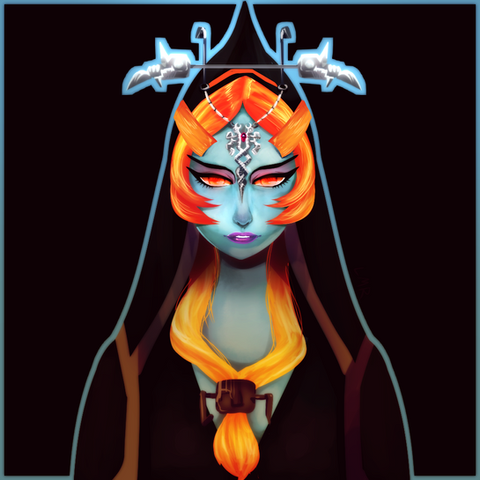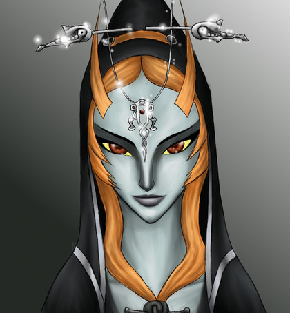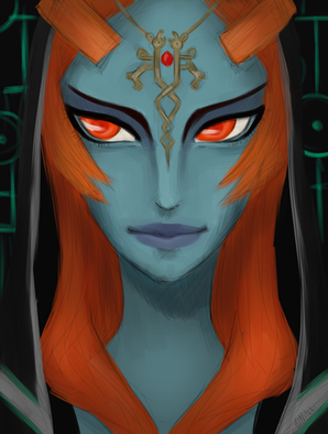 When I was sketching out like usual on my OCs, I had the idea to portray each and everyone's face to get myself a clear picture of what they looked like. However, OCs wasn't the only ones getting there - of course I had to make one to MidnaHere, I wanted to improve by focusing on facial details, so that I can paint her better in future pictures. The background may not look too interesting, but it can be improved later on if you wish. This did take quite a while, actually; to make her face not look all flat required to experiment, but hey, I found some pretty neat shading technique. Not that I didn't love you and your face already, Midna, but here I think myself that I've made some improvement! ^^