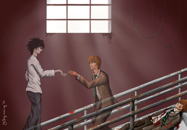 aww it's beautiful. I like the emotions displayed. L looks like he's having a nightmare and Light is comforting him but that's just me o.0