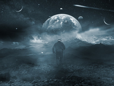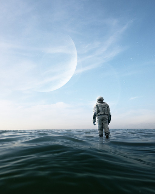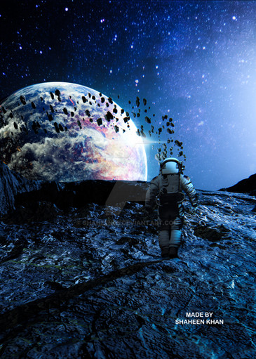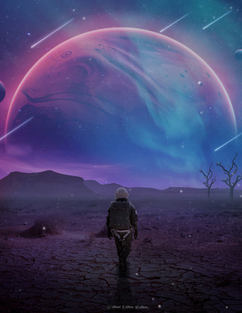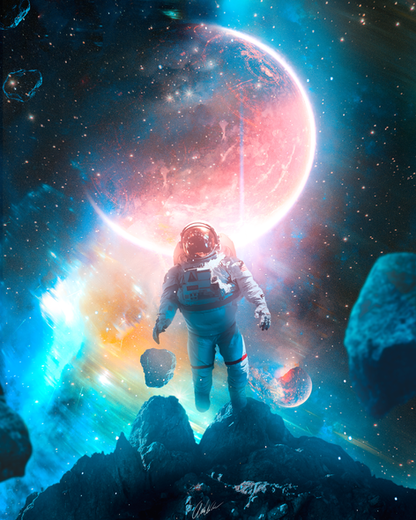Ideia gira. Eu trabalhava melhor o fundo, principalmente o planeta e adicionava uma rim light no astronauta.