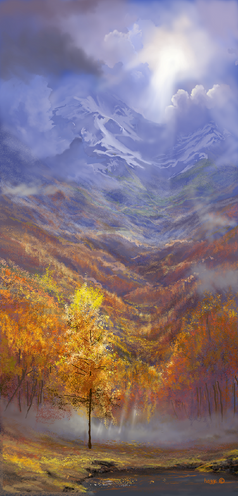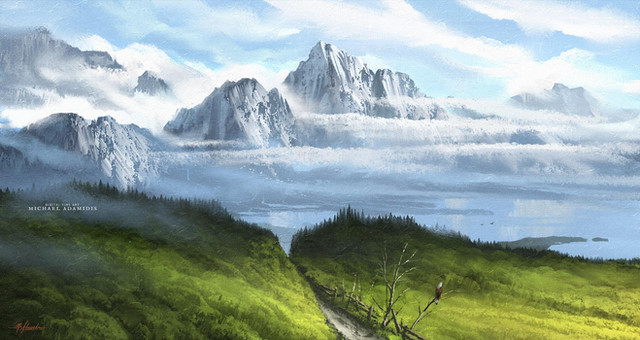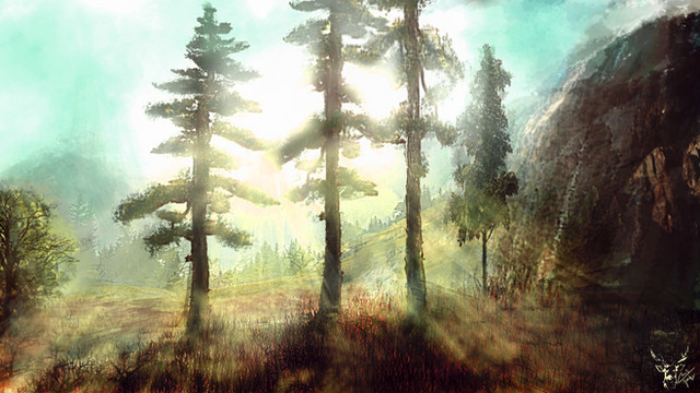#clouds #digitalart #etcetc #fantasy #forest #landscape #mountains #scenery #sunlight #quandra #musciinspired #doesanyonereadthese #streamingsunshine #digitalpainting