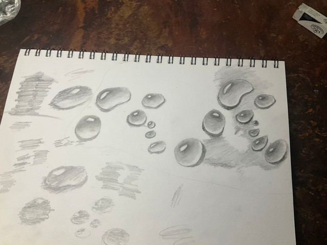 Step 1: Draw out your basic design (easy enough, as water drops tend to be circular to one degree or another.)