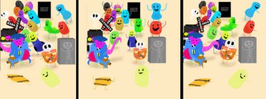In series of dumb deaths 4, the characters are no longer in HTF style. They are just like the original beans.He also appears in the tree skiing game.