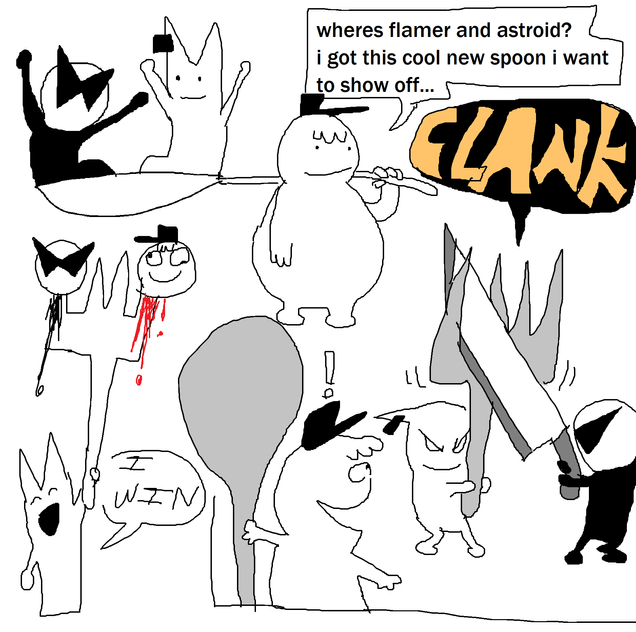 Simpleton is a short comic series I made up towards the end of school. They don't have names and they only say ooh and aahh! Both of these...um...blobs? started out in a sketchdump and evolved into their own comic. This is the first one I did on MS paint. Enjoy their random combustion.Related content
