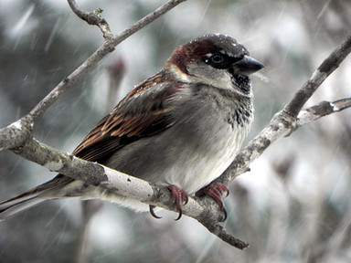 This is a wonderful picture of a male House Sparrow. He seems very content. It's simple, but beautiful and adorable nonetheless. I think, maybe he'd be more content if his mate was present.