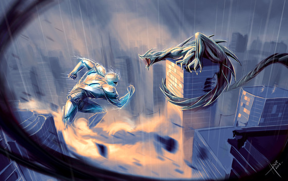 #giant #cityscape #fightscene #mecha #monster