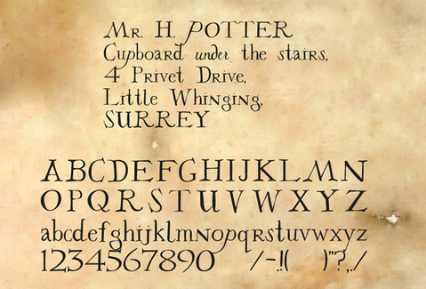 A font based on Harry Potter's Acceptance Lettter to Hogwarts. I scanned the acceptance letter included with the Harry Potter: Film Wizardry book, and created the letters, numbers and symbols from that.The font includes Capital letters, lowercase letters, numbers and some symbols.