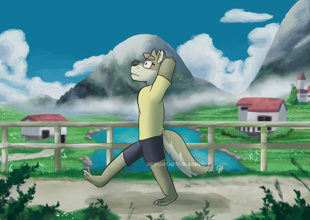 #anthro #digital #fox #furry #nature #painting #park #pond #trees #urban