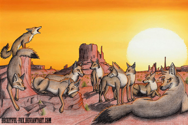 Well foxes and coyotes are close cousins. I think native american stories usually portray them as brothers.Β