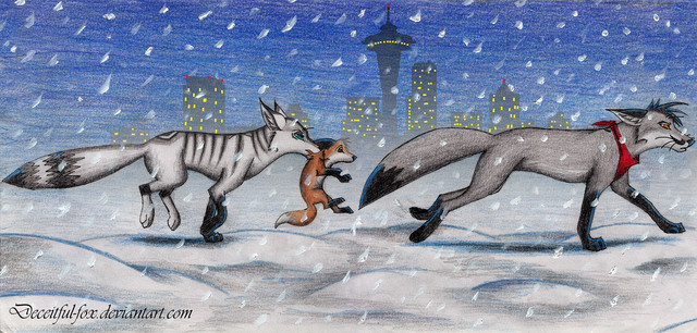 Here's a much belated Christmas present to my dearest ~Lily-Box . The story behind this picture is; in real life my girlfriend is nigh on five foot nothing and I am six foot something, yet our characters are entirely the opposite. So I thought I would illustrate it! I'm still working on how to draw wolves, I don't think this will be my final style but I'm getting there.Victor (c) me.