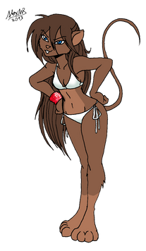 That's one hot-looking outfit she's got on, and I'd love to hug the fluffy tail. That smile however just says something that'll make me keep my distance, heh.